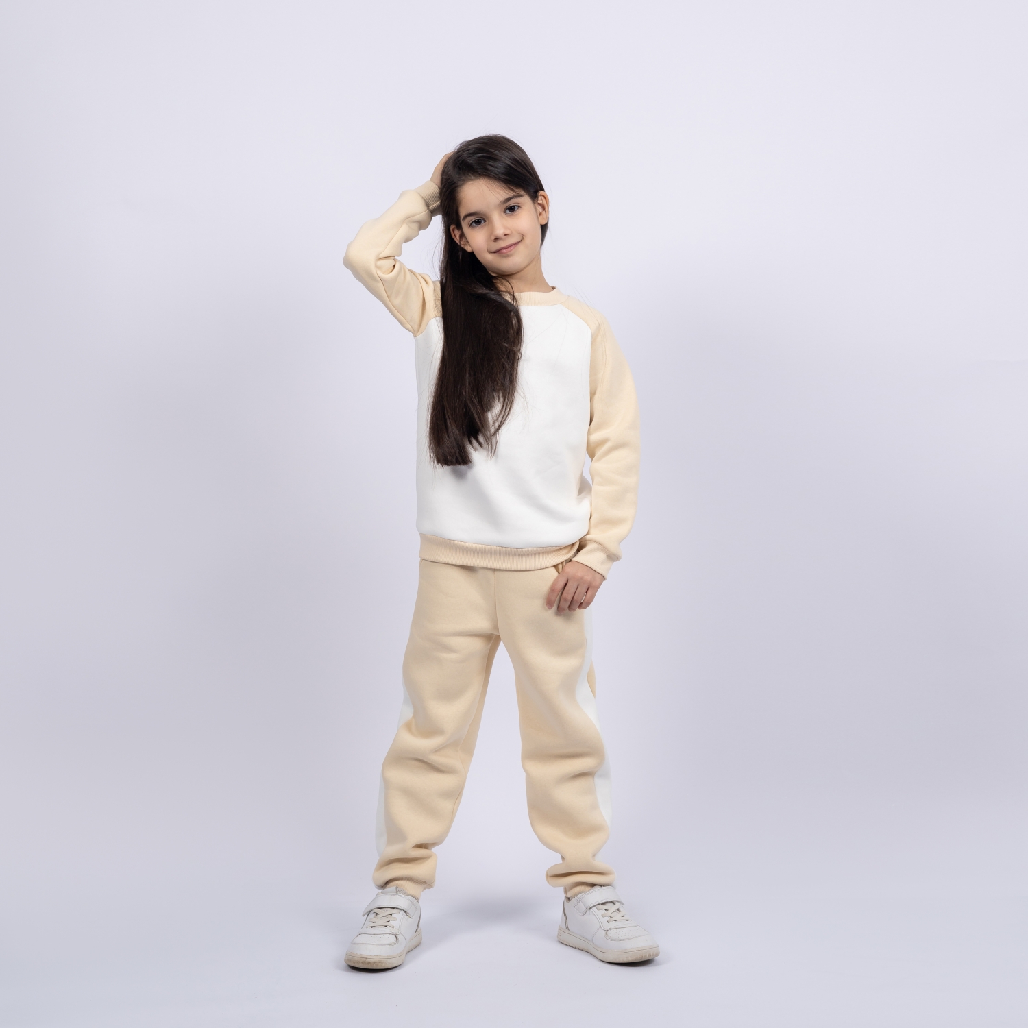 Купить оптом 314-СЛ Свитшот + Штаны, сливочный, хлопок 65%, 35% ПЭ, 3-х нитка (начес) 80,86,92,98,104 в Саранске